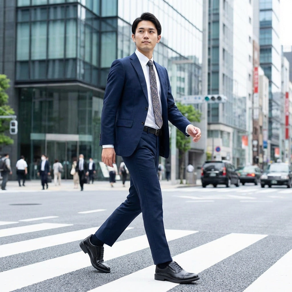 ビジネスにもカジュアルにも合わせやすく、幅広いシーンで活躍します。